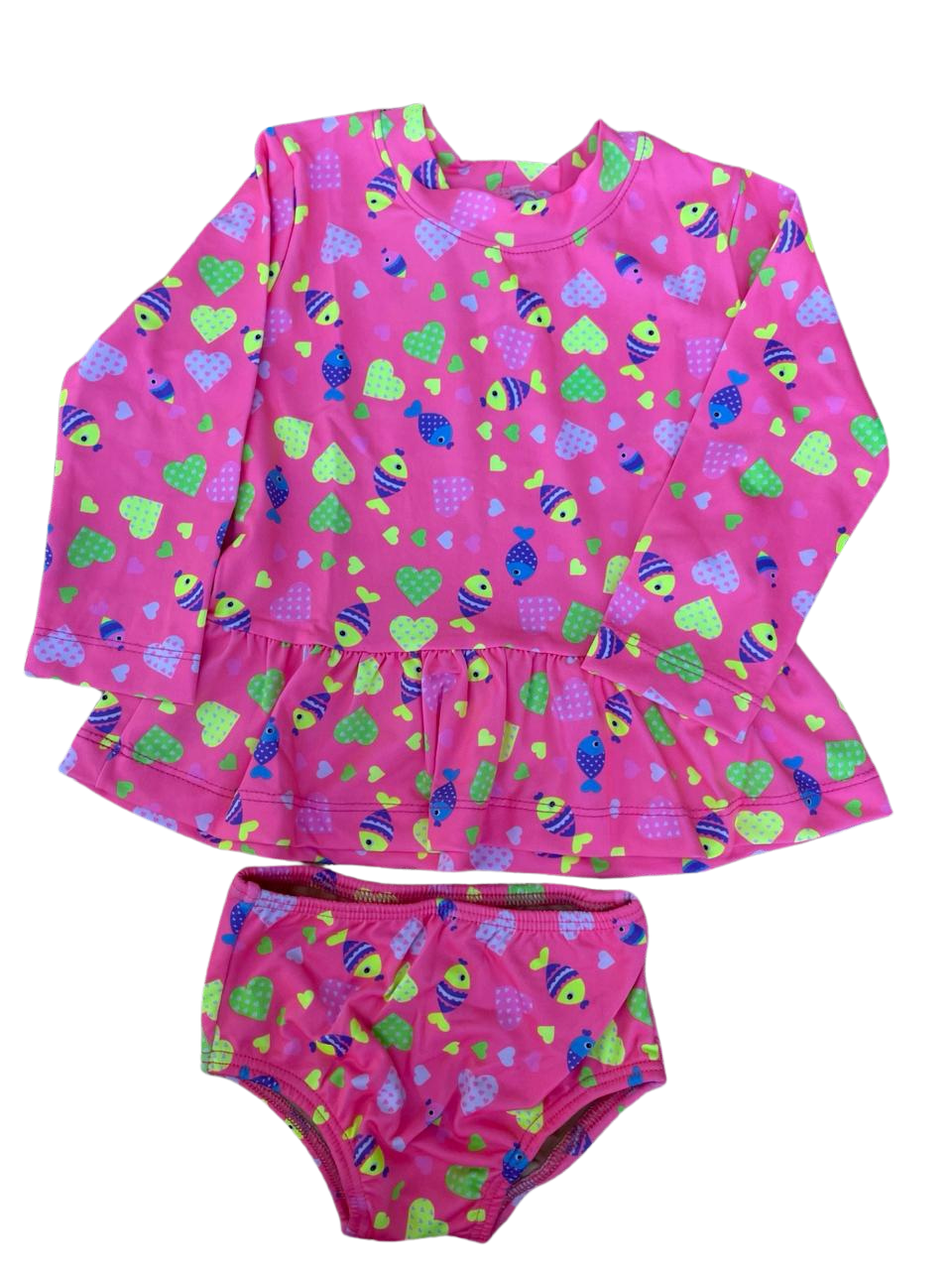 Prepare sua pequena para dias ensolarados com o encantador Biquini Blusa Infantil Menina Proteção UV Peixes Neonda AleKids! Confeccionado em malha UV poliéster, este conjunto garante proteção e conforto enquanto ela se diverte na piscina ou na praia. Com uma linda estampa, ele traz um toque alegre e divertido ao visual. Ideal para as aventuras de verão, combine com um chapéu e uma saída de praia para um look completo. Deixe sua menina brilhar sob o sol com estilo e segurança!