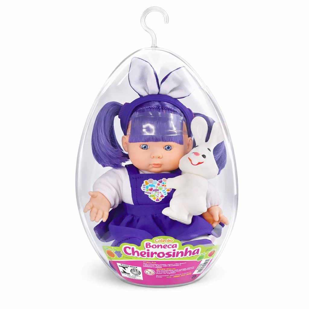 01 Ovo de acrílico com Boneca Cheirosinha Uva com Coelho Agarradinho.