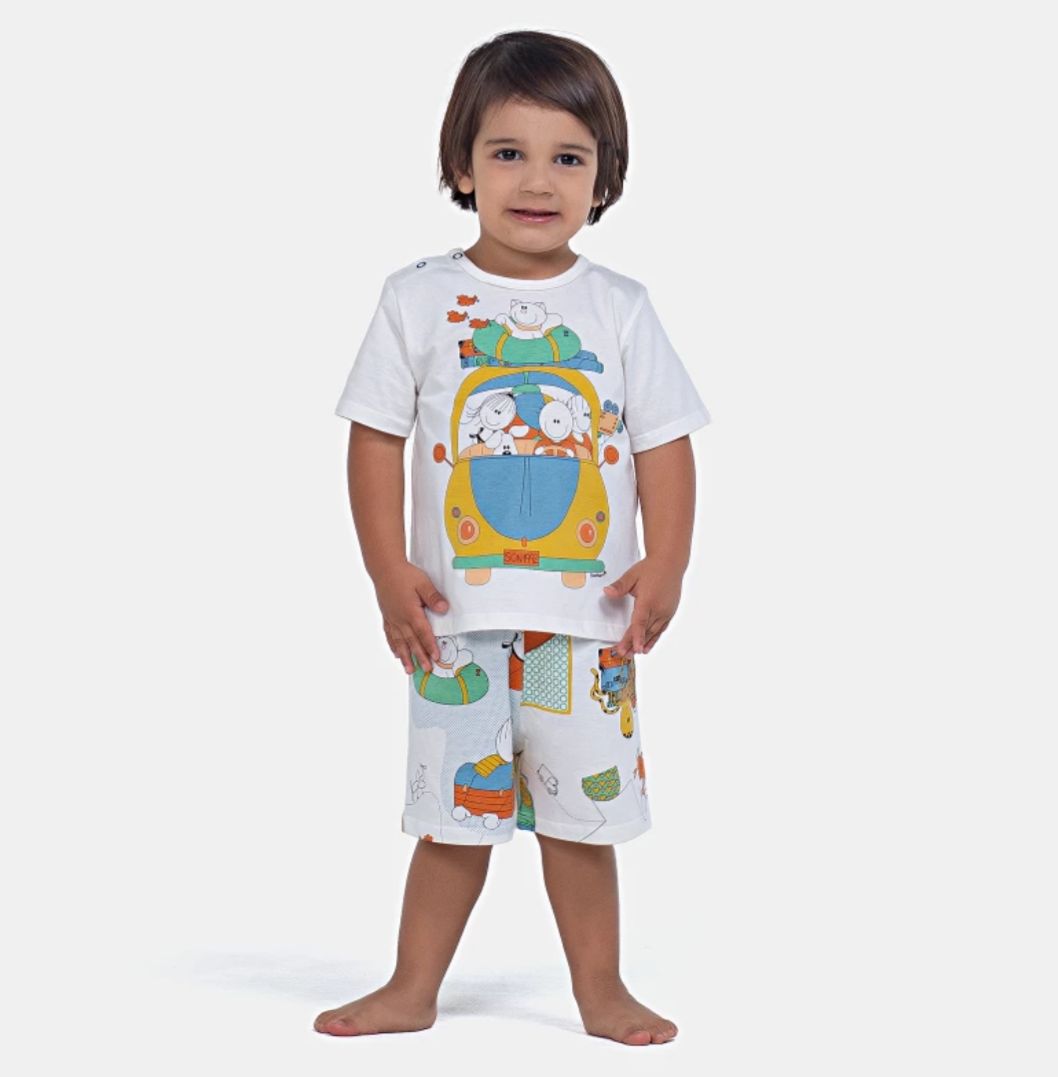 Conjunto Pijama Camiseta Viagem - Sonhart com estampa local e bermuda com estampa corrida, confeccionados em tecido meia-malha 100% algodão.