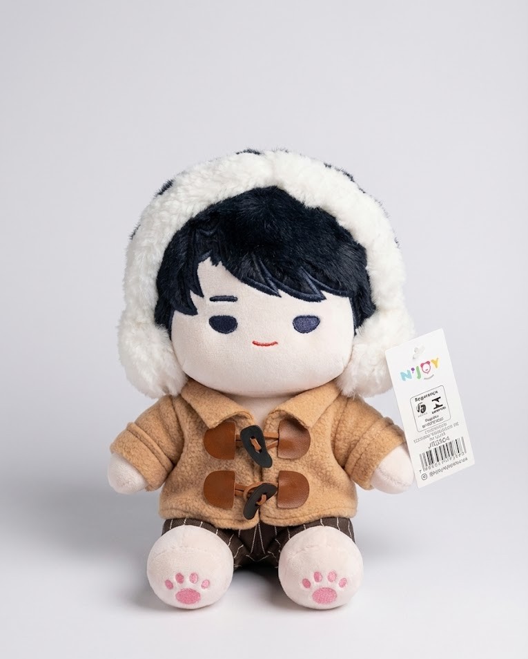 Este boneco destaca-se pelo seu look de inverno super detalhado. Ele veste um charmoso casaco marrom estilo Duffle Coat com botões de alamares e um capuz com acabamento em pelúcia branca macia, garantindo um visual cozy e moderno. Os detalhes fazem toda a diferença: note as delicadas patinhas cor-de-rosa bordadas nas solas dos pés, que adicionam um toque extra de ternura.